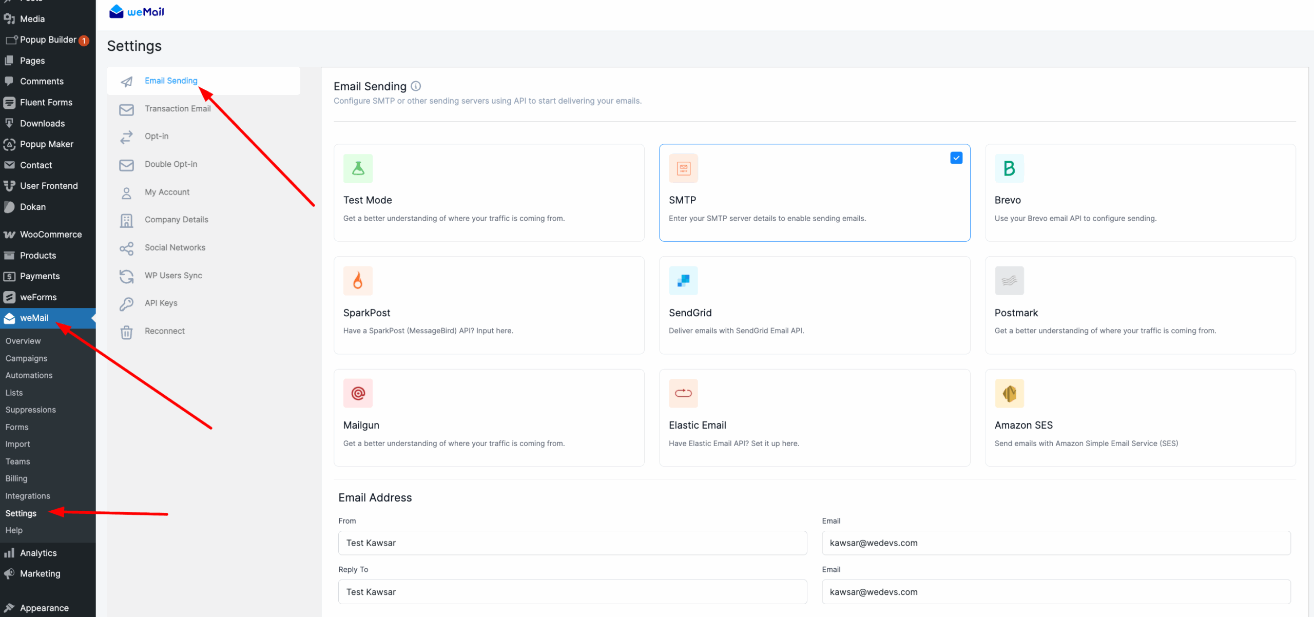 Go to weMail → Settings → Email (Gateways).