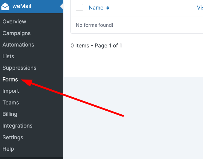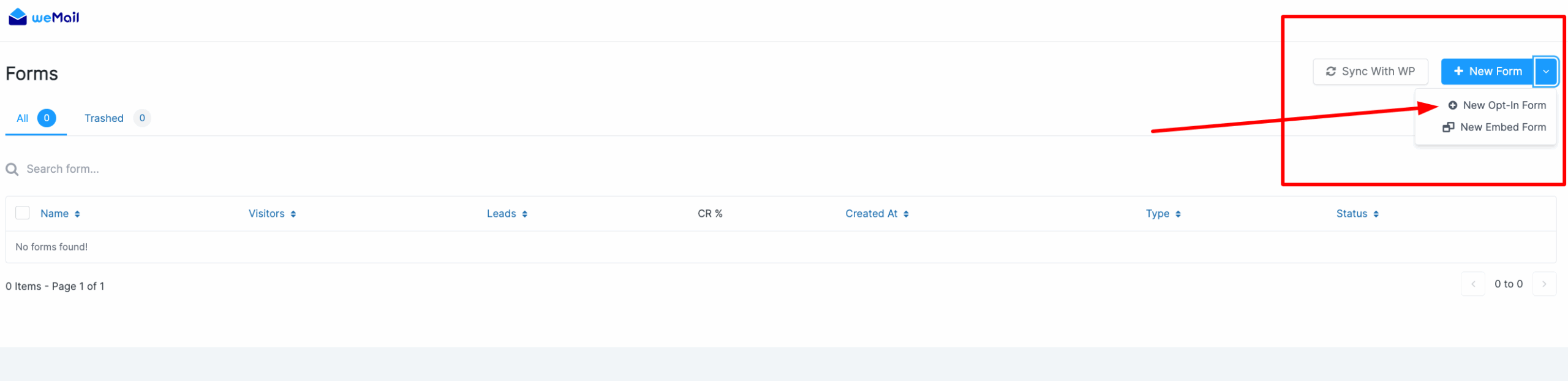 First, you have to log in to your WordPress dashboard. And click the weMail from the left sidebar. Then go to the weMail → Forms → New Optin Form.