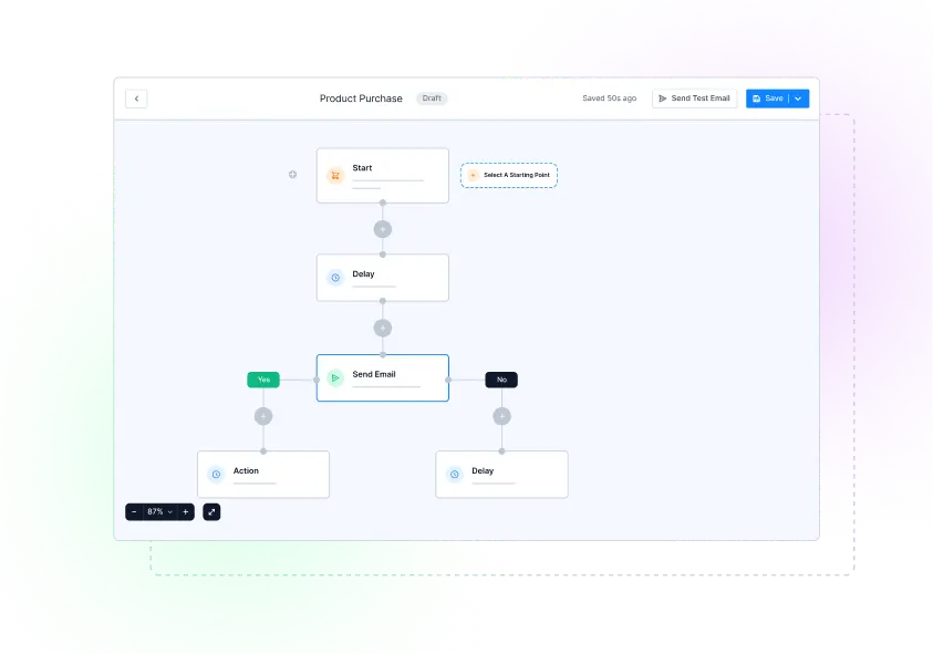 Arrange the customer journey the way you want using Delays, Actions, and of course Emails. With If/Else conditions, different touchpoints can be tailored according to different user behaviors.