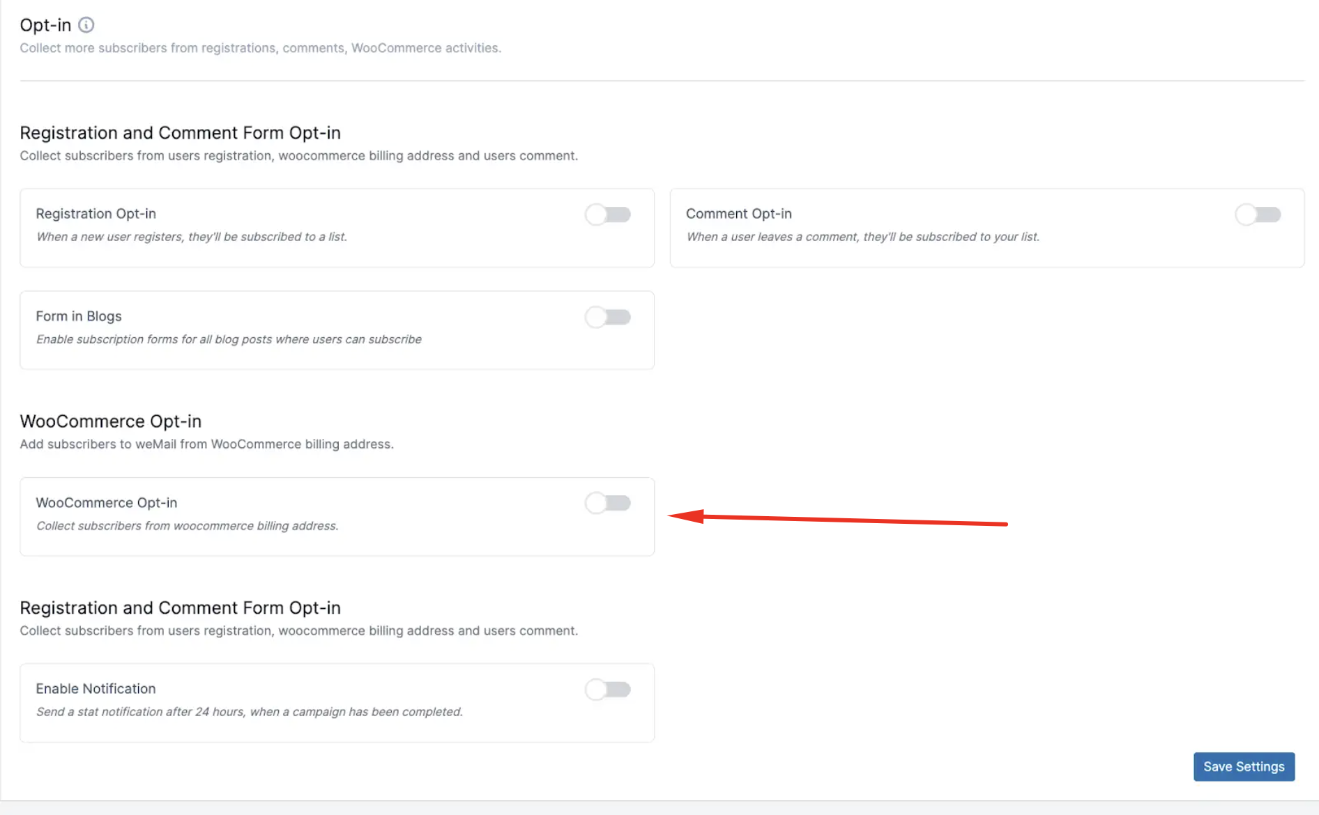 A sophisticated automation setup means nothing without a healthy list to send to. The good news is weMail gives you multiple ways to capture subscribers directly from your store without needing separate list-building plugins cluttering up your dashboard.